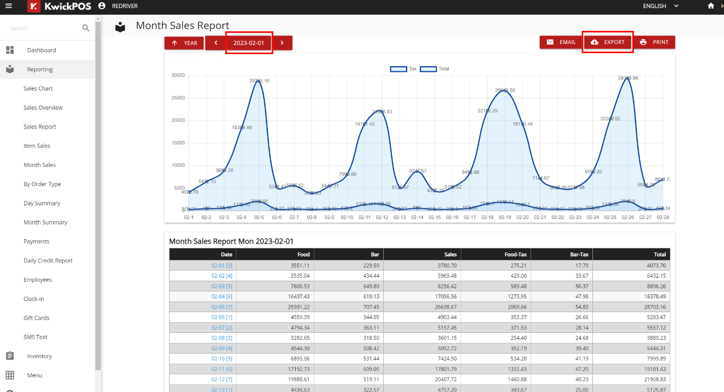 2. Back Office -> Reporting -> Month Sales –> Input Month > Click on the date